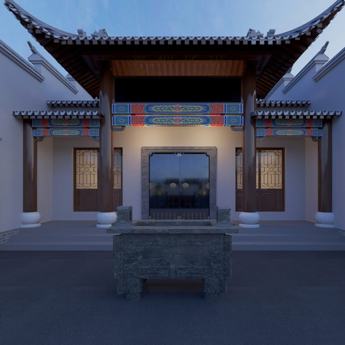 三景式+内厅多牌位+墙面可自定义简介公德碑纪念馆
